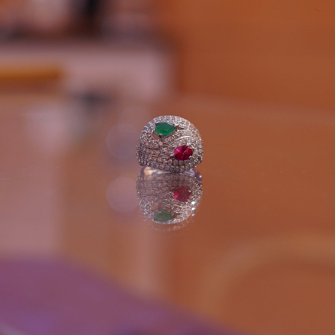 Elevate your presence with the Ruby Tiara, an exquisite crown-inspired ring that commands attention. Crafted...