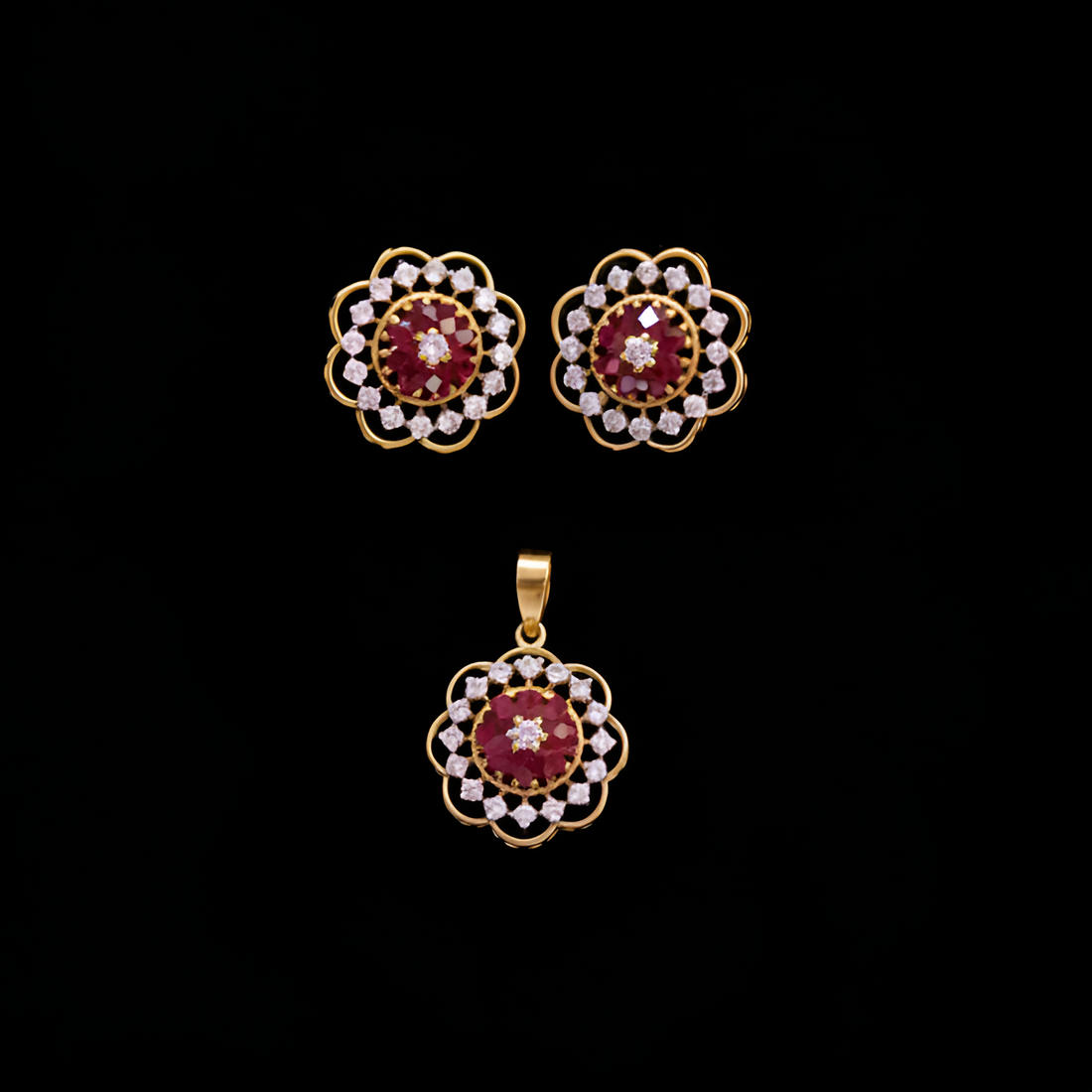 The Luxe round Ruby Pendant Set is designed to reflect graceful beauty and refined style....
