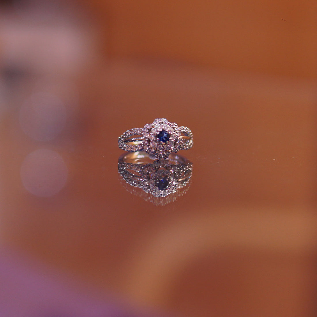 The Azure Marquise Halo – 925 Sterling Silver Sapphire & Split-Shank Statement Ring