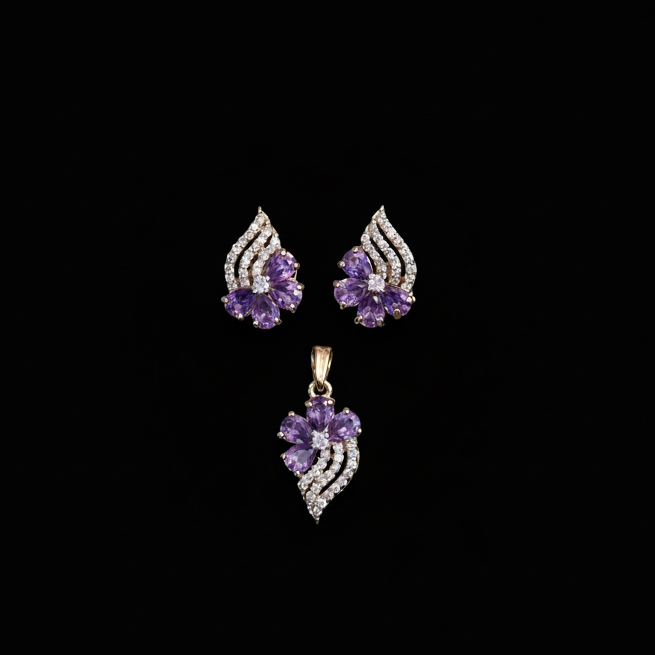 Yeh Elegant Purple Pendant Set khoobsurti aur class ka perfect combination hai. Is set mein stylish pendant aur matching earrings shamil hain jo aapke har look ko graceful aur glamorous bana dete hain.