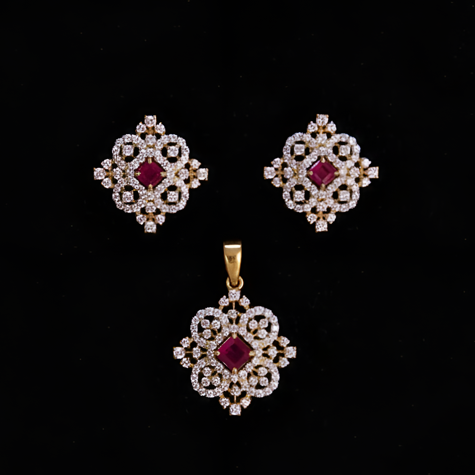 Yeh Royal Ruby Pendant Set elegance aur luxury ka perfect blend hai. Is set mein beautiful pendant aur matching earrings shamil hain, jo har outfit ko shahi touch dete hain.