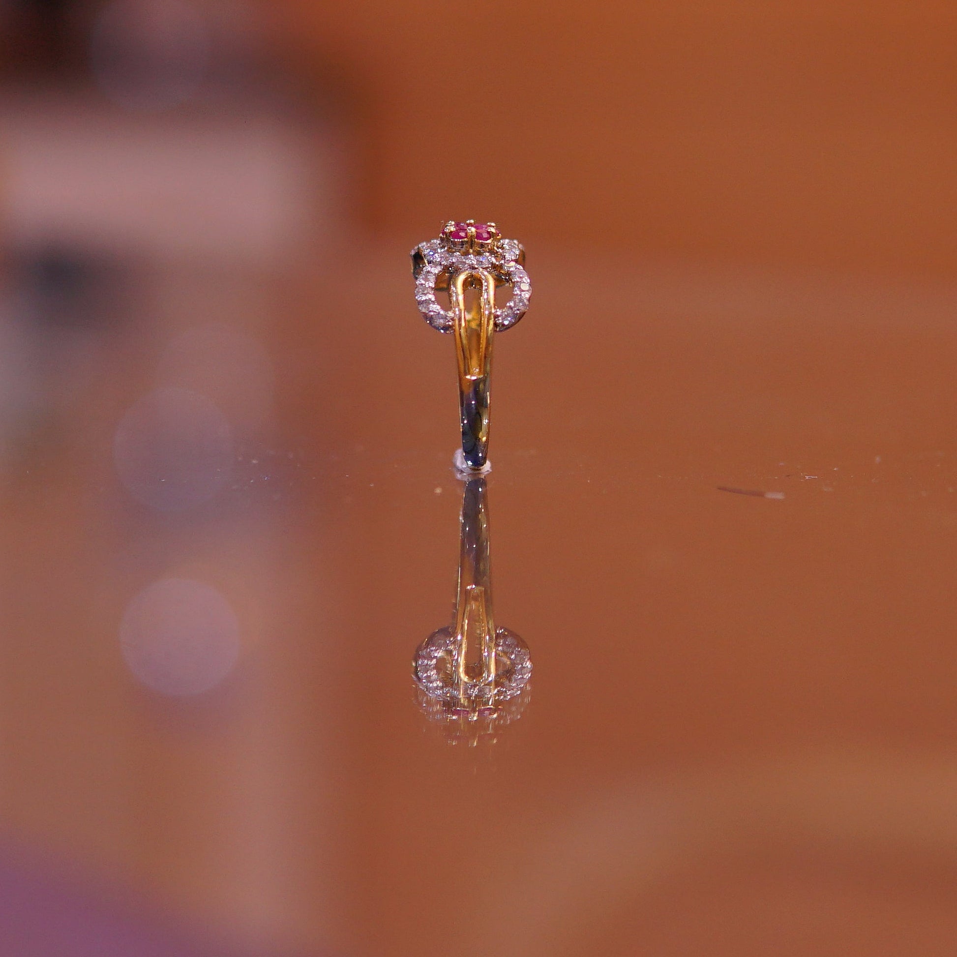 Artisan Floral Design: A captivating central cluster of red rubies arranged to mimic a blooming flower in full radiance.