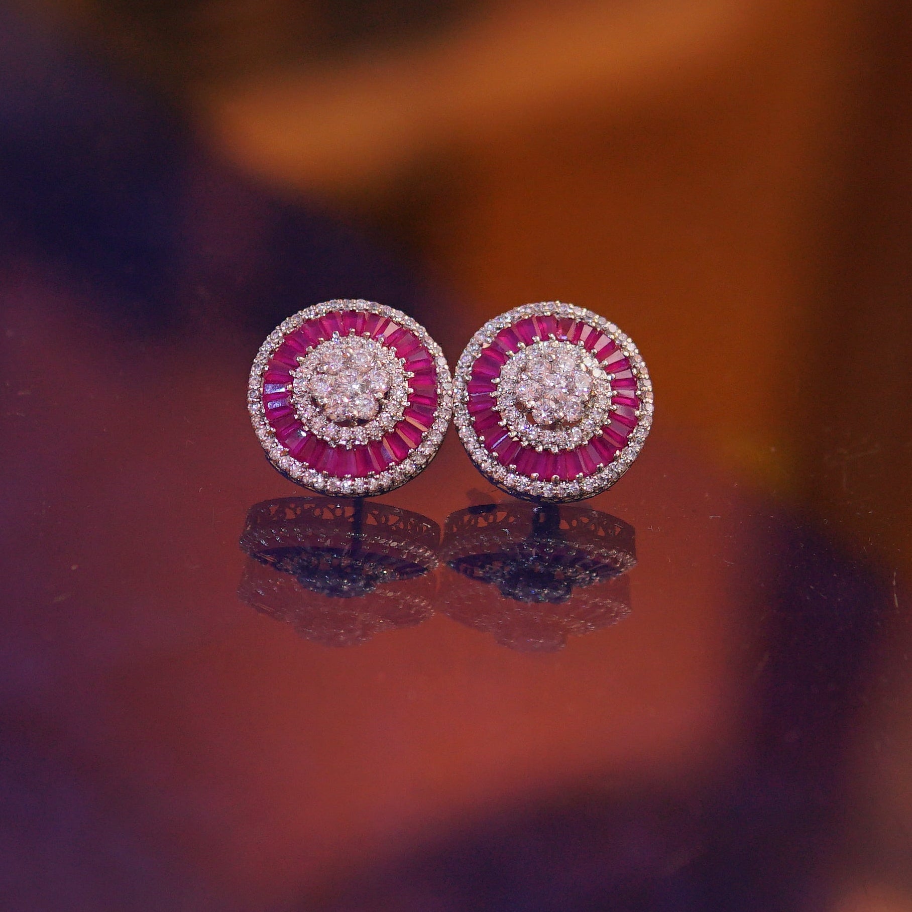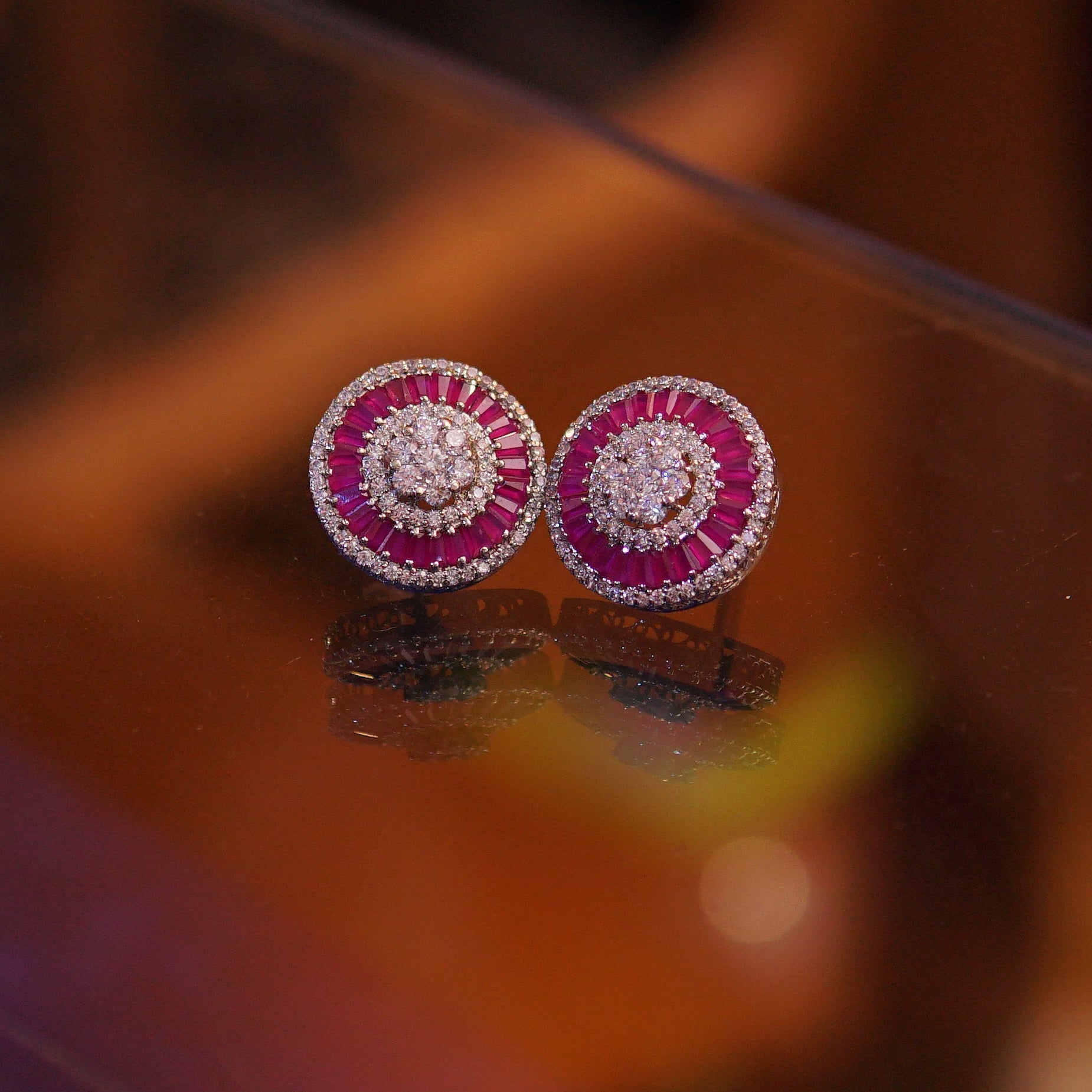 This round ruby earring is centered with a richly hued ruby, framed by clear cubic zircon for a subtle, luminous contrast. Designed with clean lines and balanced proportions, it offers effortless elegance for everyday wear or elevated occasions.