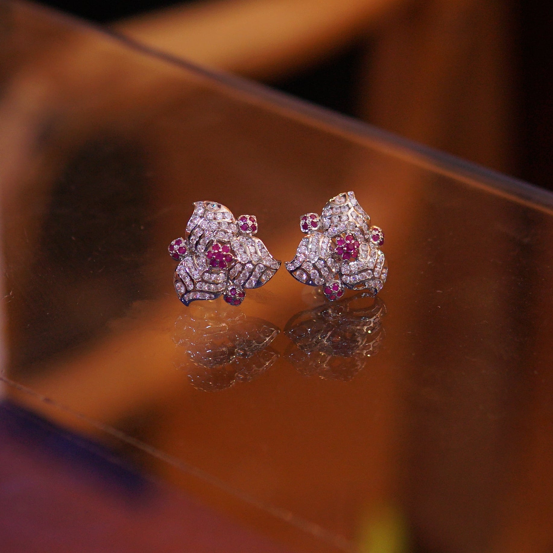 This round ruby earring features a vivid central ruby, complemented by cubic zircon stones seamlessly embedded in a clean channel setting. The smooth, uninterrupted lines create a refined silhouette, offering modern elegance with enduring appeal.